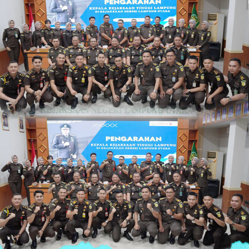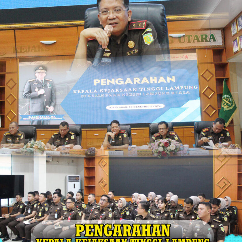 Kegiatan dilanjutkan dengan pengarahan dari Kepala Kejaksaan Tinggi Lampung, Asisten Intelijen dan Asisten Pengawasan kepada seluruh jajaran pegawai pada Kejaksaan Negeri Lampung Utara.