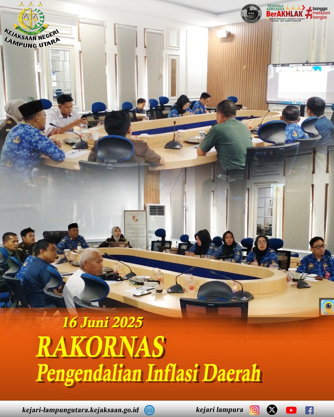 Jaksa Pengacara Negara pada Kejaksaan Negeri Lampung Utara Faris Rayaguna, S.H., Qoridawati Purnalis, S.H. menghadiri rapat secara daring terkait Pengendalian Inflasi Daerah bertempat di ruang rapat Bupati Lampung Utara.