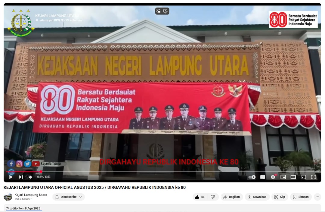 Kejaksaan Negeri Lampung Utara turut berpartisipasi dalam Lomba Kebersihan, Keindahan, dan Kerapian (K3) yang diselenggarakan oleh Pemerintah Kabupaten Lampung Utara, Dalam rangka memperingati HUT RI Ke-80.