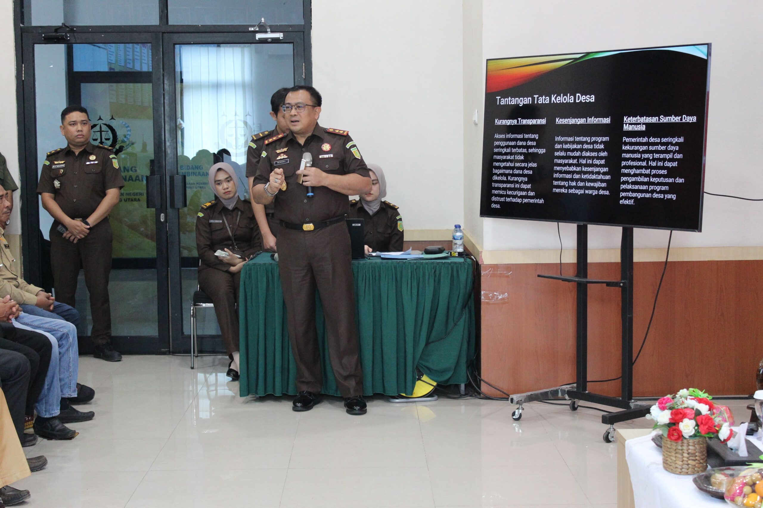 Rabu ,4 Desember 2024Bertempat di Aula Kejaksaan Negeri Lampung Utara telah dilaksanakan kegiatan Forum Group Discussion (FGD) dalam rangka peringatan Hari Anti Korupsi Sedunia (HAKORDIA) Tahun 2024 dengan mengangkat Tema “Penguatan Tata Kelola Pemerintahan Desa yang Bersih dan Transparan untuk Mewujudkan Desa Maju Bebas Korupsi”. Kegiatan tersebut dihadiri oleh Kepala Kejaksaan Negeri Lampung Utara (Hendra Syarbaini, S.H.,M.H), Kasi Intelijen Kejaksaan Negeri Lampung Utara (Guntoro Janjang Saptodie, S.H.,M.H), Kasi Pidsus Kejaksaan Negeri Lampung Utara (Muhammad Azhari Tanjung, S.H), Asisten Pemerintahan dan Kesejahteraan Rakyat Pemda Kabupaten Lampung Utara (Man Kodri, S.H.,M.M, CPIA),…